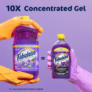 Makes it easier to clean more surfaces* while leaving a long-lasting fresh scent (*vs. non-concentrated Fabuloso Original).